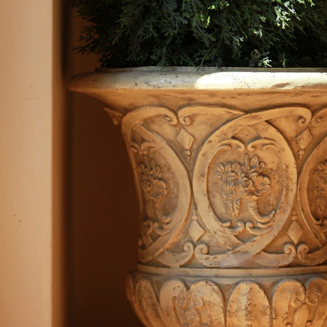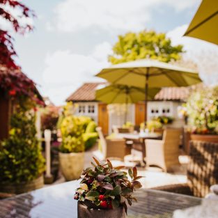 The third dining area is the Courtyard Room, which offers a slightly more modern aesthetics with its atrium roof and open plan dining looking out onto a walled courtyard with pretty pot plants.