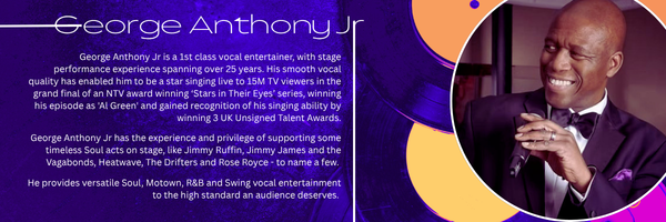 From the golden sounds of the 60s to contemporary favourites, George Anthony Jr masterfully brings to life the very best of classic soul and iconic Motown, creating an unforgettable soundtrack to your evening that will have you singing along and dancing in your seat.